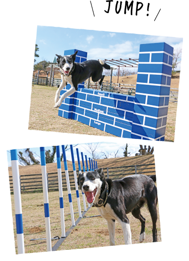 アジリティーにも挑戦してみよう!スラロームやハードルがあります。上手にできるかな?新しい才能を発見!!
