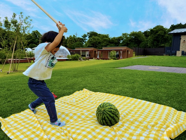 マザー牧場グランピングGreen Baseは広大なゴルフコースの一角にあります。