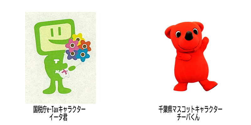 当日は国税庁 e-Tax キャラクター イータ君や、千葉県マスコットキャラクター チーバくんがやって きて皆様をお出迎えします。 この機会にみんなで「税」について考えよう!