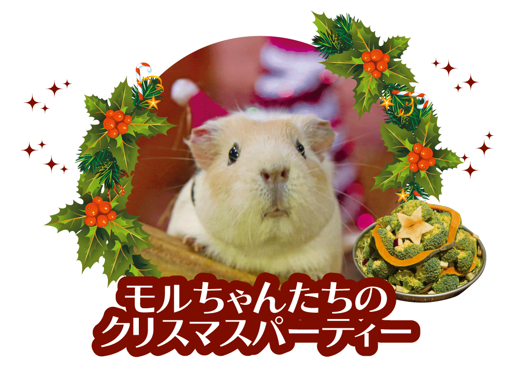 クリスマス仕様にデコレーションされた会場で、モルモットたちと一緒にクリスマスパーティーを楽しもう!