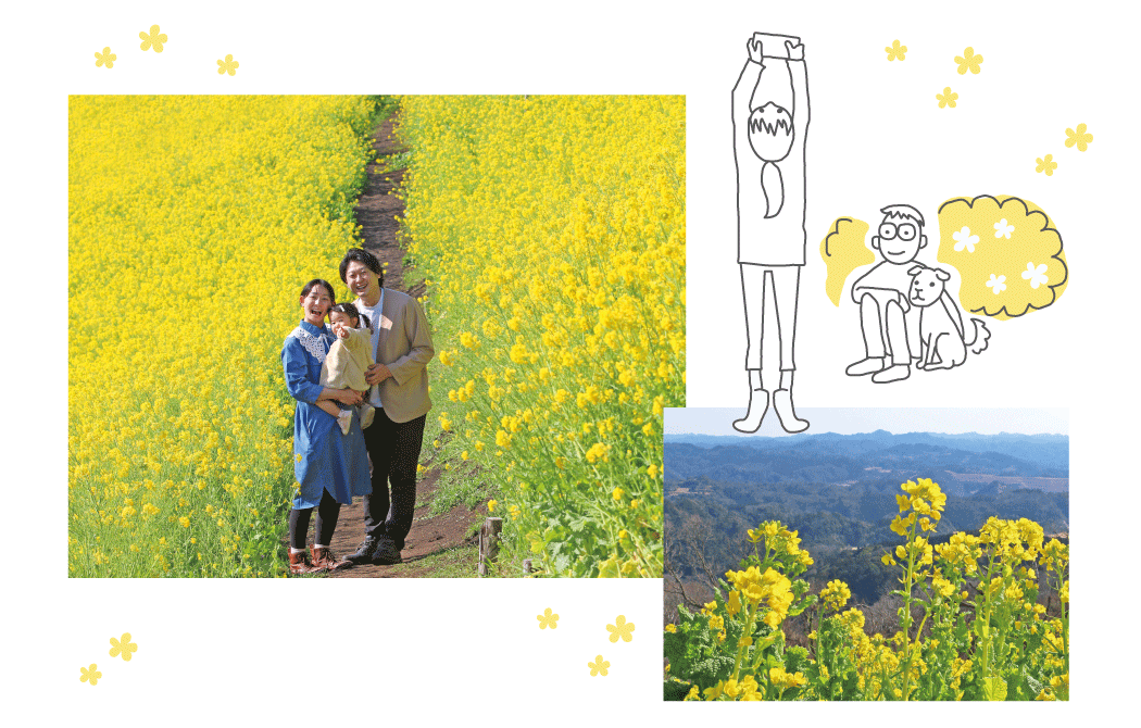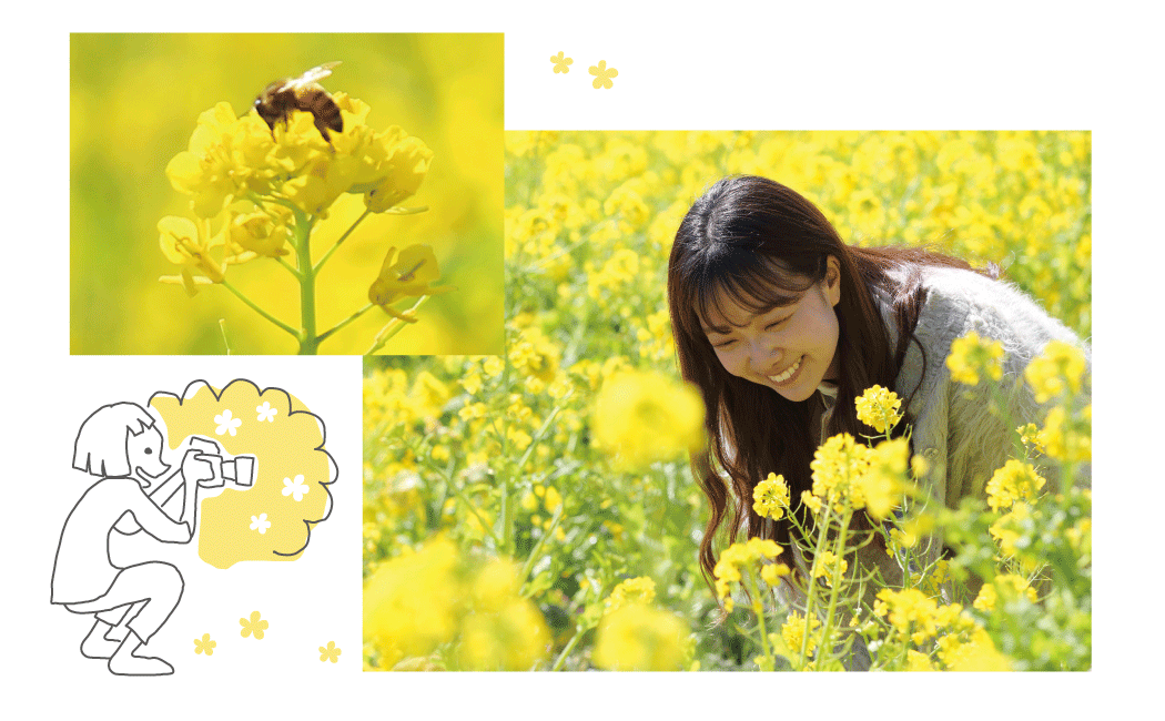 斜面を利用すると、360度お花に囲まれたお写真や、菜の花と青空だけのお写真を撮れちゃいます❁