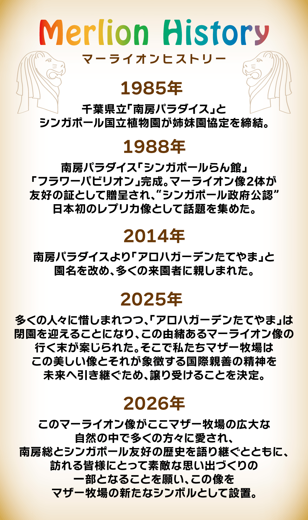 FARM DINERの横のエリアにマザー牧場の新たなシンボルとしてマーライオン像がやってきます!