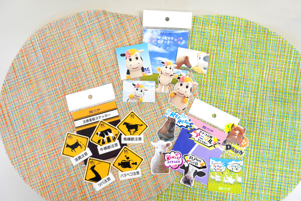 マザー牧場のキャラクター「マーモママ」、かわいい動物たち、場内のユニークな注意看板の3種類です♪手帳に貼ったりスマホケースに入れて、癒されてみてくださいね。