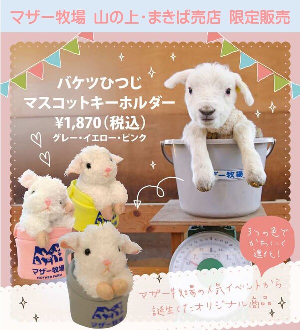 マザー牧場春の大人気イベント「バケツ羊の体重測定」のかわいい姿をマスコットキーホルダーにしました💖